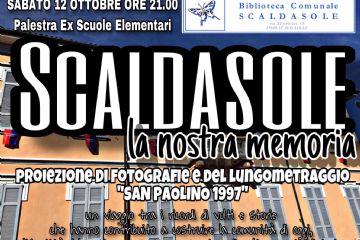 Sabato 12 Ottobre alle ore 21.00 presso la palestra delle ex scuole elementari la biblioteca presenta SCALDASOLE "LA NOSTRA MEMORIA",proiezione di fotografie e del lungometraggio "SAN PAOLINO 1997"...