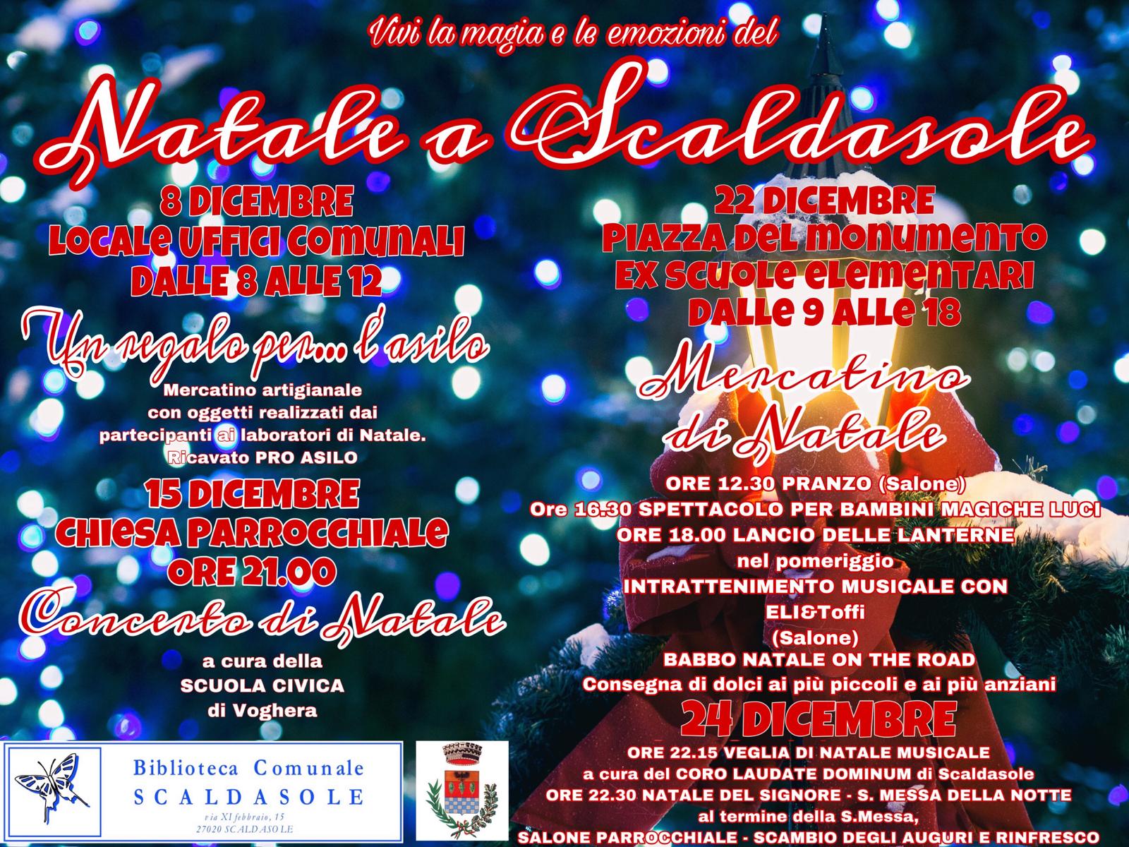24 DICEMBRE ore 22:15 VEGLIA DI NATALE MUSICALE a cura del CORO LAUDATE DOMINUM di Scaldasole ,ore 22:30 NATALE DEL SIGNORE - S. MESSA DELLA NOTTE al termine della s.messa scambio degli auguri presso il salone parrocchiale con rinfresco.