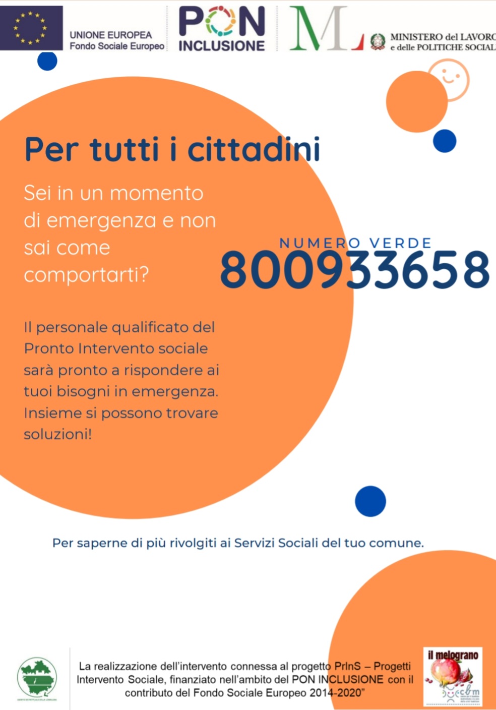 Il cittadino in difficoltà può trovare una risposta immediata, tempestiva e qualificata chiamando il numero verde 800 933 658.