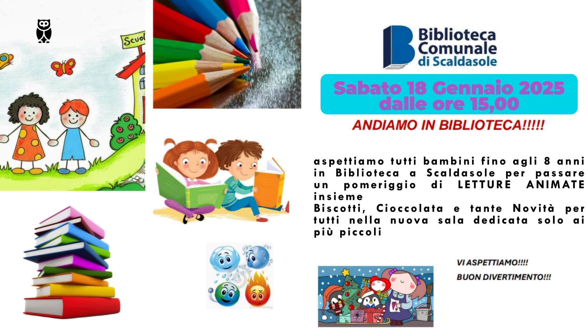 Pomeriggio di letture animate per bambini fino agli 8 anni con biscotti, cioccolata e tante novità nella nuova sala dedicata ai più piccoli.