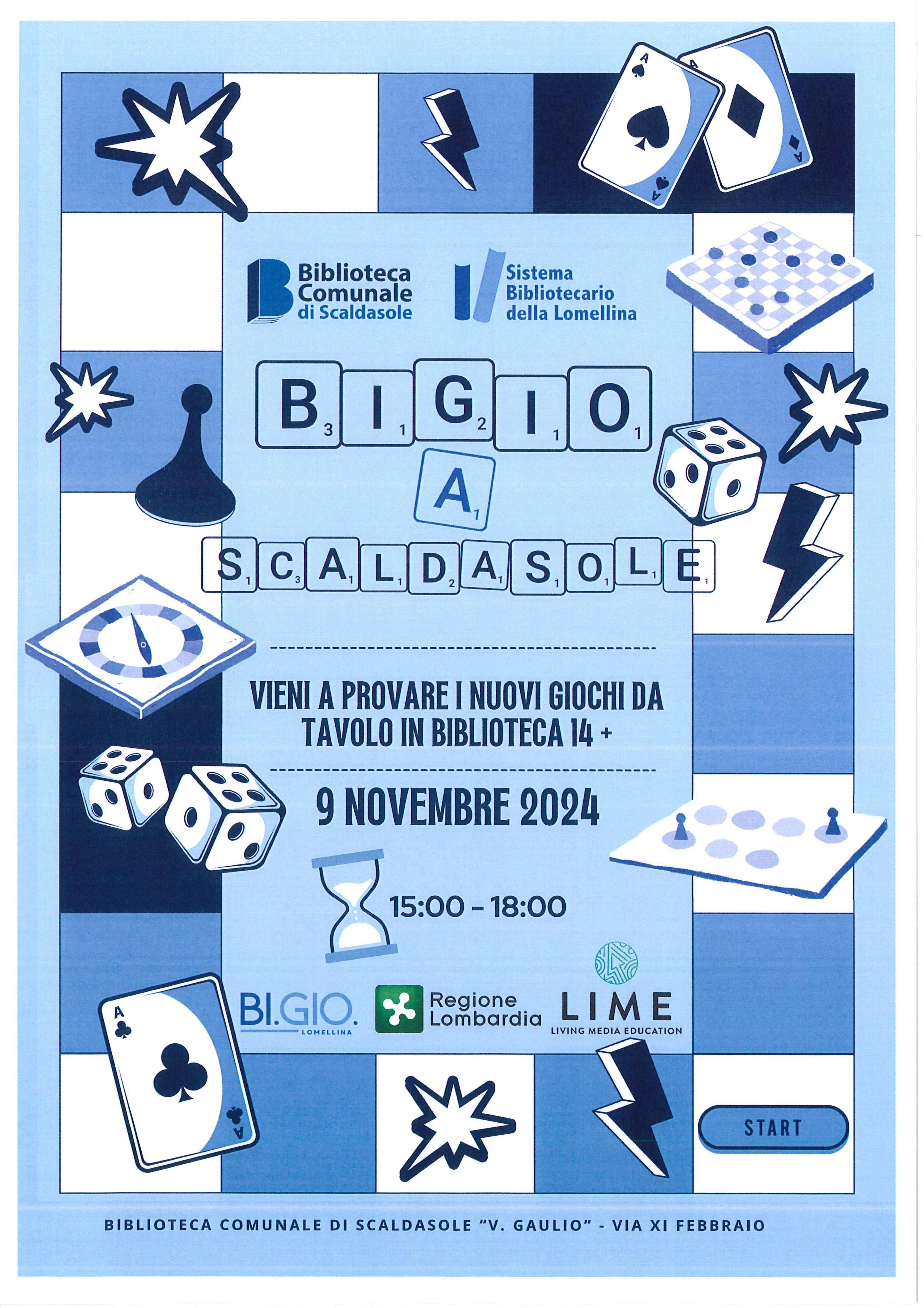 Bi.Gio. è un progetto finanziato dalla Regione Lombardia, nell’ambito dell’Avviso Unico Cultura 2024, che ha come obiettivo l’introduzione dei giochi da tavolo nelle biblioteche del Sistema.