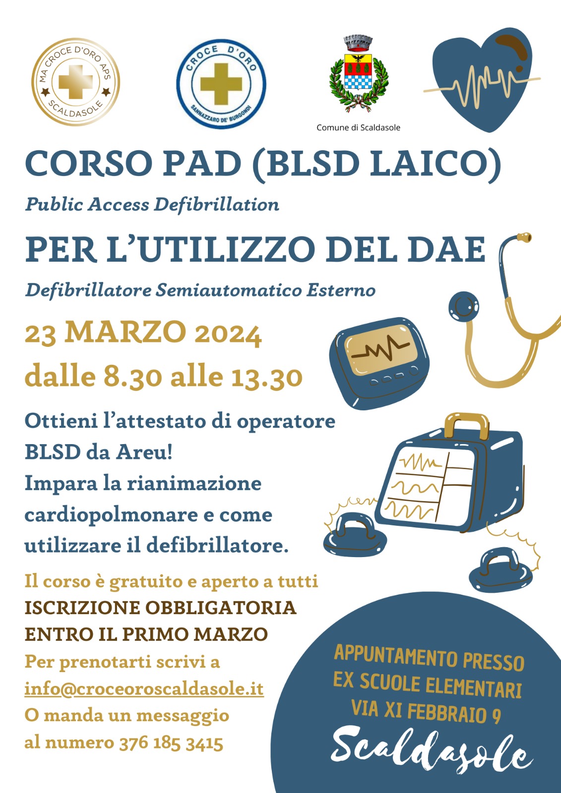 Corso PAD (Public Access Defibrillation) per l'utilizzo del DAE (Defibrillatore Automatico Esterno).