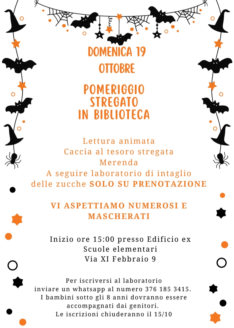 Lettura animata, caccia al tesoro stregata, merenda e laboratorio di intaglio delle zucche.