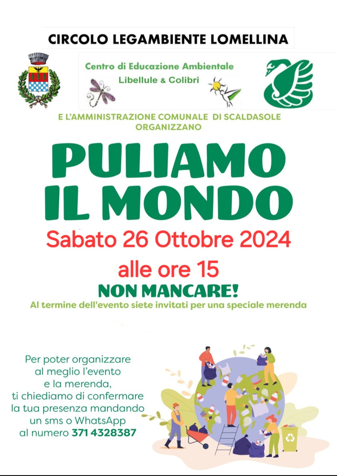 Il Centro di Educazione Ambientale Libellula e Colibrì e l'Amministrazione Comunale organizzano PULIAMO IL MONDO.
