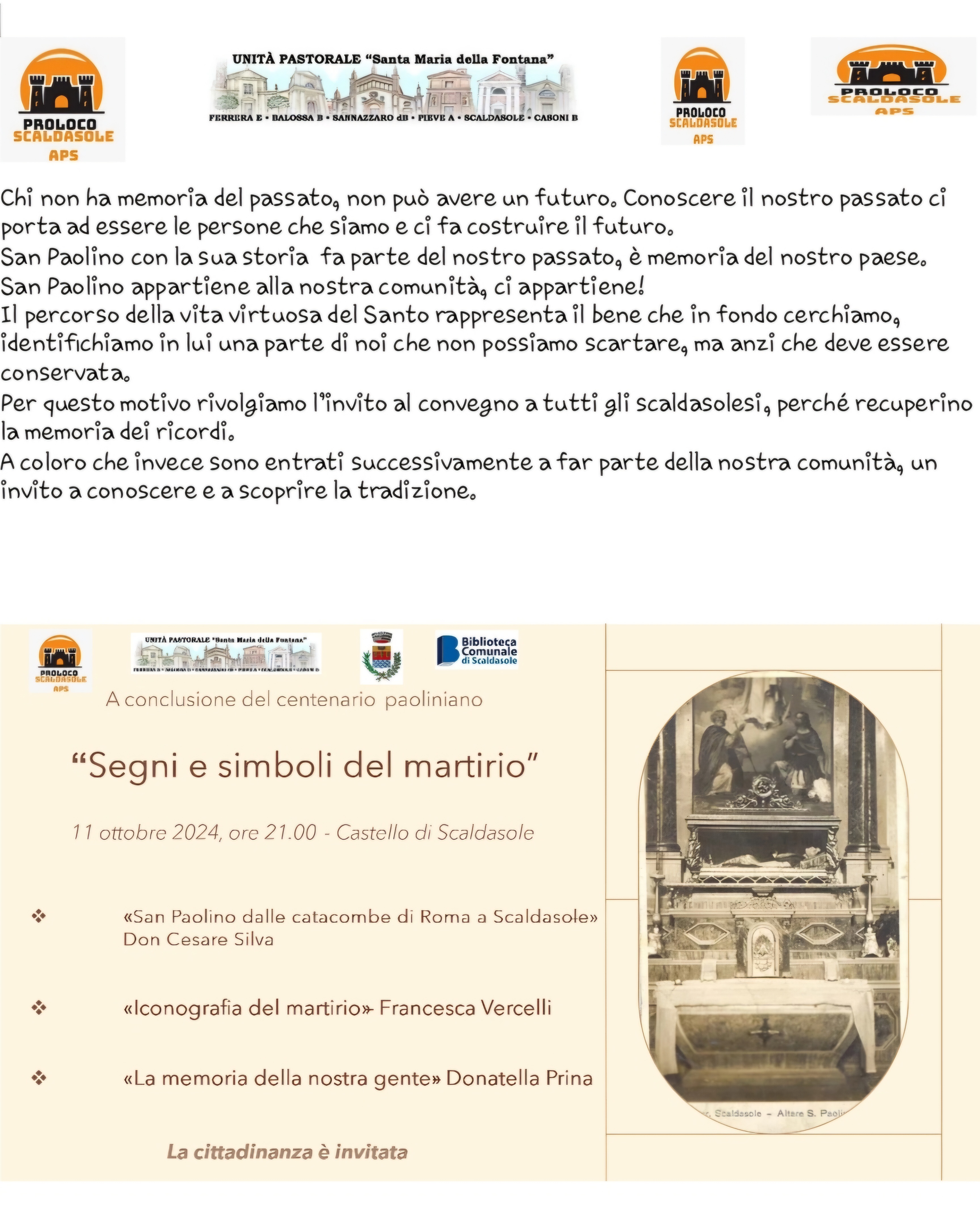 Per questo motivo rivolgiamo l'invito al convegno a tutti gli scaldasolesi, perché recuperino la memoria dei ricordi.