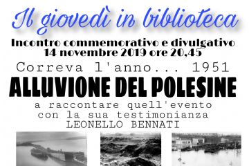 Incontro commemorativo e divulgativo il 14 Novembre 2019 alle ore 20:45 presso le ex scuole elementari aula piano terra, LEONELLO BENNATI racconterà quell'evento con la sua testimonianza, con...